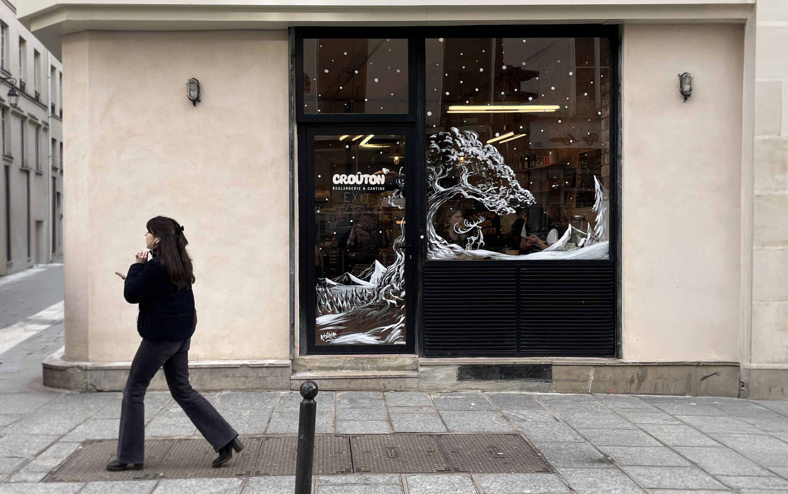 Pour retirer votre fresque. Un peu d’eau chaude et un bon grattoir suffisent à restituer rapidement la transparence de votre vitrine.